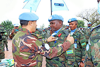 Rwandan peacekeepers, Level II Hospital and Rwanda Battle Group IV, serving under the United…
