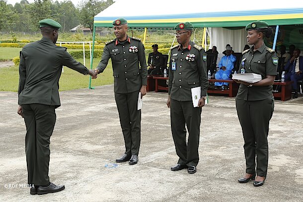 The pass-out ceremony was graced by top RDF Senior officers and attended by parents, friends, relatives, spouses of the graduates and local authorities in the Northern Province.