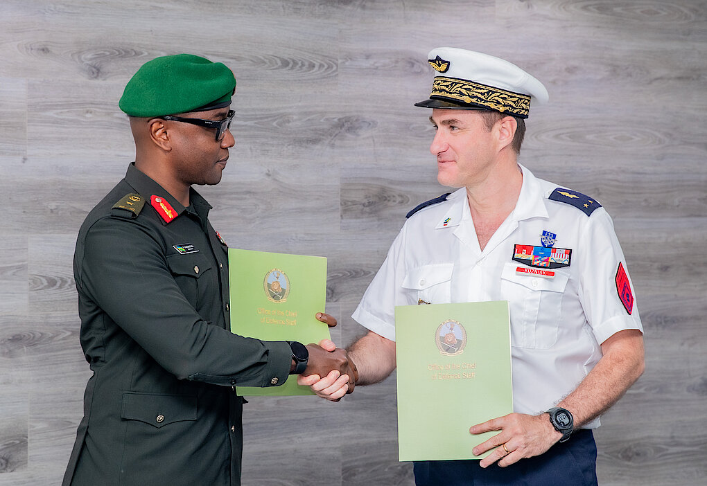 The delegation held consultations with RDF counterparts led by Brig Gen Patrick KARURETWA, Head of International Military Cooperation Department and paid a courtesy call to the CDS, Lt Gen Mubarakh MUGANGA.