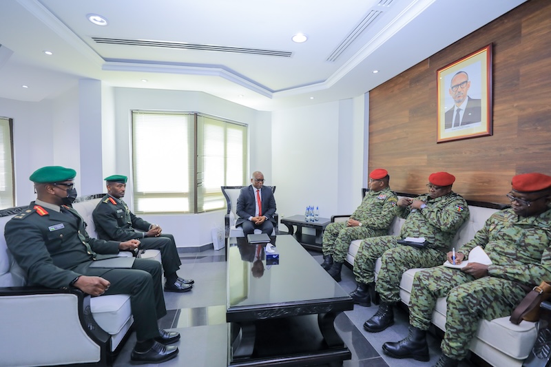 Today, the Chief of General Staff (CGS) of the Central African Republic Armed Forces, Maj Gen Zépherin MAMADOU visited the Rwanda Defence Force headquarters where he was welcomed by the RDF Chief of Defence Staff, Gen MK Mubarakh. He also extended a courtesy call to the Minister of Defence, Hon Juvenal Marizamunda.
