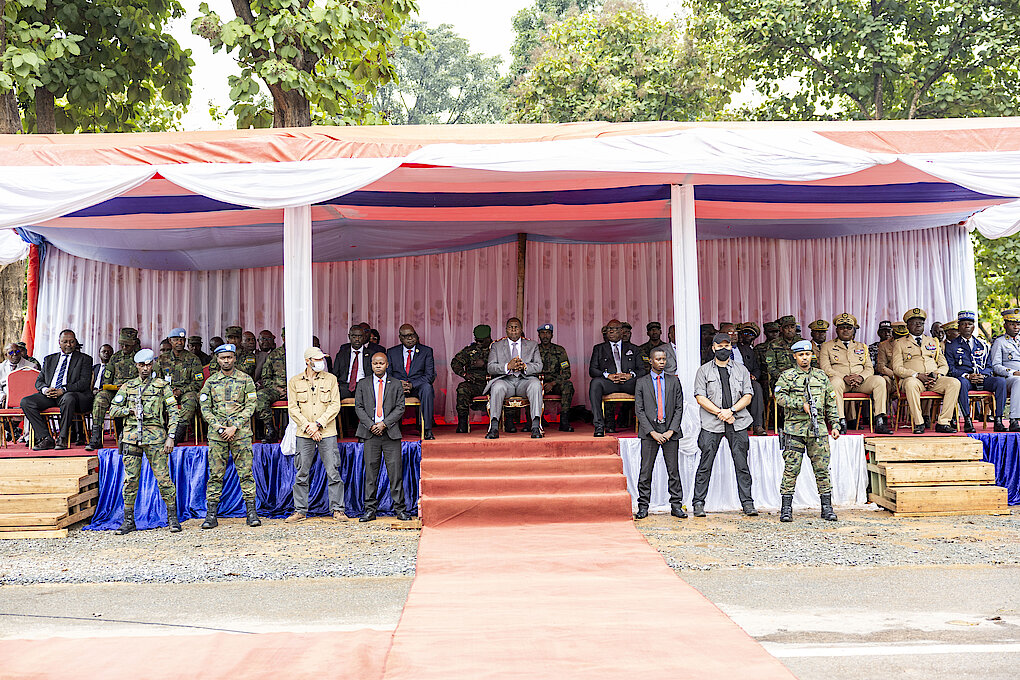 The ceremony that took place at Bangui’s Camp Kassaï was presided over by H.E Prof Faustin Archange Touadera, the President of Central African Republic and was attended by Maj Gen Wilson Gumisiriza, RDF Mechanised Division Commander on behalf of the Chief of Defence Staff.