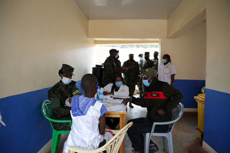 Maj Gen S O Radina, KDF General Officer Commanding Border Security visited the RDF medical services at Muumandu Health Center and thanked the Rwandan Contingent for work done emphasising that the local community benefited from the medical expertise sent from Rwanda.