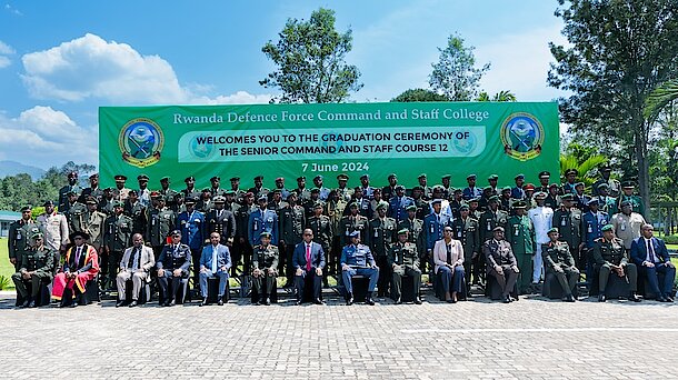 Forty-nine Senior Officers from Rwanda Defence Force (RDF), Rwanda National Police and Allied Armed Forces from 10 African countries have graduated from the one-year long Senior Command and Staff Course Intake-12. The graduation ceremony was presided over by the Minister of Defence, Hon Juvenal Marizamunda.