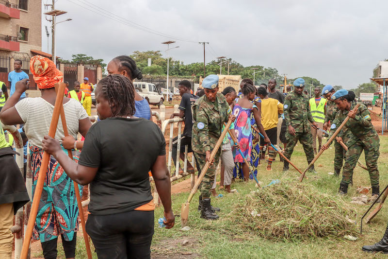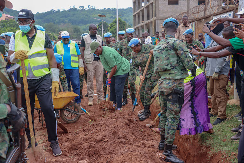 Today, His Excellency Professor Faustin-Archange Touadéra, President of the Central African Republic, joined Rwanda Peacekeepers (RWABATT12) serving under the United Nations Multidimensional Integrated Stabilization Mission in the Central African Republic (MINUSCA) in community work in the 1st Arrondissement, Avenue Touadera, Bangui City.