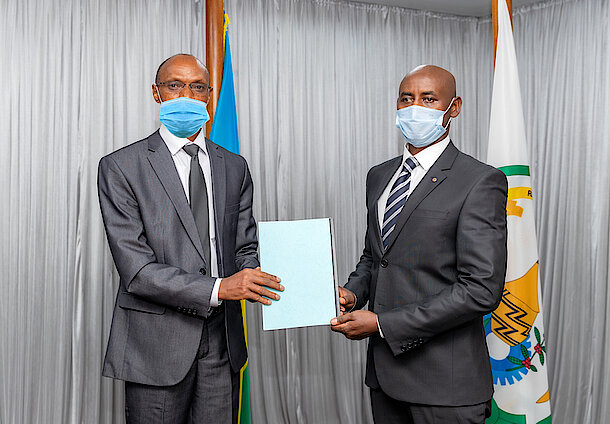 Today, the newly appointed MOD Permanent Secretary, Maj Gen Emmanuel BAYINGANA assumes office, he takes over from Col (Rtd) Innocent GASHUGI. The handover held at MOD Headquarters was presided over by Hon. Minister of Defence, Maj Gen Albert MURASIRA.