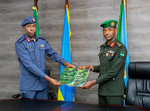 Today, the handover ceremony of newly appointed RDF Service Chiefs took place at RDF HQs. Lieutenant General Mubarakh Muganga assumes office as Army Chief of Staff while Lieutenant General Jean Jacques Mupenzi takes over as Air Force Chief of Staff.
