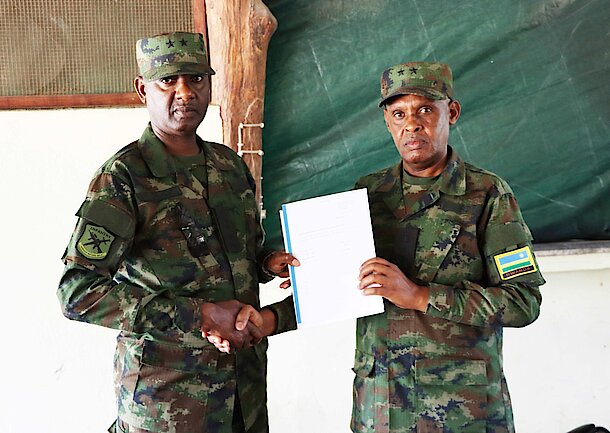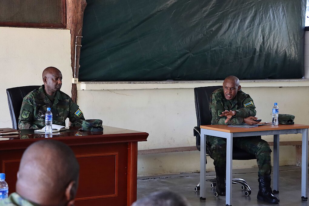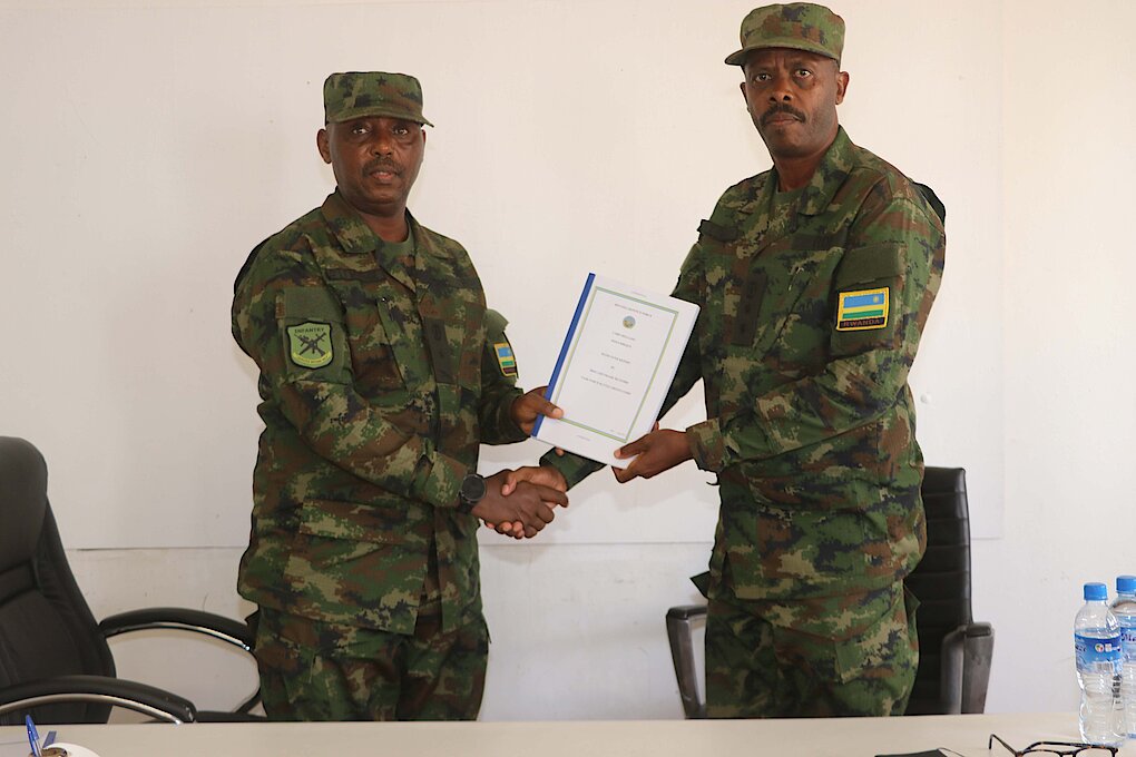 Maj Gen A Kagame thanked the outgoing Rwanda Security Forces (RSF) leadership for their impressive achievements registered throughout the year. He also commended the good coordination and cooperation with Mozambican forces in maintaining security in RSF area of operation.
