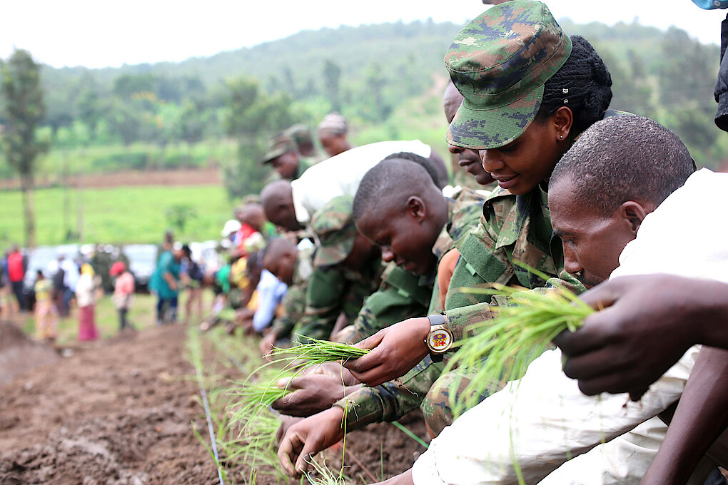 As with any other army, the primary responsibility of the Rwanda Defence Force (RDF) is to defend the territorial integrity of Rwanda and to safeguard its national sovereignty. However, the constitution of the Republic of Rwanda assigns RDF a secondary role, to support the development aspirations of the country and actively to participate in ensuring human security and Rwanda’s socio-economic development.