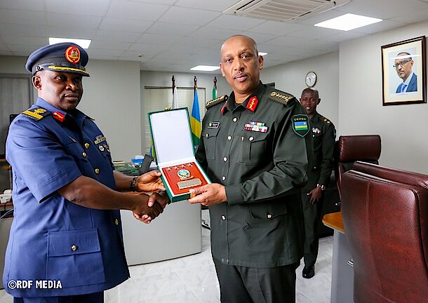 A delegation of 27 senior military officers from the National Defence College of Nigeria is in Rwanda for a regional study tour from 18-25 May 2019. The delegation, led by Air Commodore Titus Z Dauda paid a courtesy call to Rwanda Defence Force (RDF) Chief of Defence Staff (CDS) General Patrick Nyamvumba after which they were given a presentation on the current security status and major activities of Rwanda Defence Force.