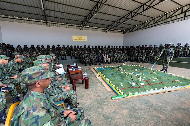 "It is the norm in any military that, to operate effectively, officers and NCOs must undertake rigorous training continuously. Military training prepares individuals to effectively perform physically and mentally demanding tasks at the highest possible levels of proficiency. Training pays off with significant achievements in theatre and routine force duties. This is in line with leadership guidance as constantly stressed by the Commander-in-Chief of the RDF," said General Mubarakh.