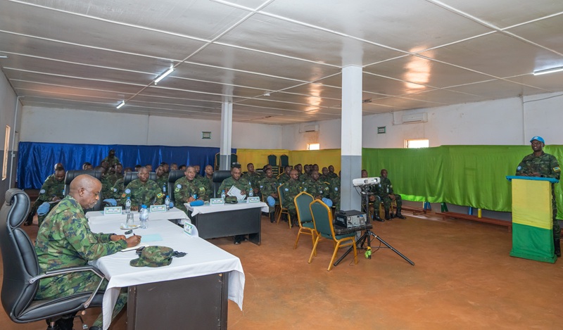 Upon his arrival, he was briefed by the Rwanda Battle Group VII Contingent Commander, Lieutenant Colonel Willy Ntagara, on the security situation and operations undertaken in efforts to maintain peace and stability in the Area of Responsibility.
