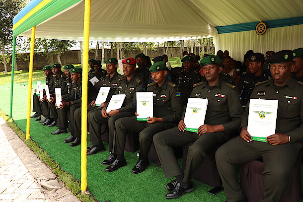 The RDF Army Chief of Staff (ACOS), Lt Gen Mubarakh Muganga presided over the graduation ceremony at the RDF Command and Staff College in Nyakinama, Musanze District.