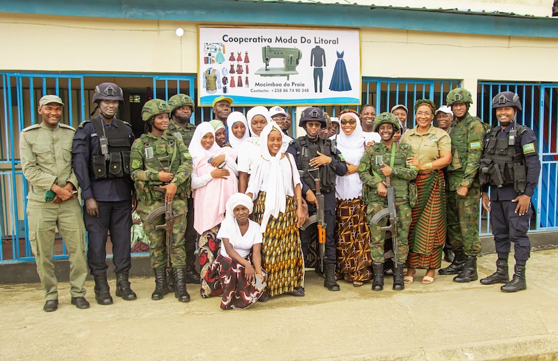 The Rwanda Security Forces (RSF) in Mozambique donated 10 sewing machines, along with their essential accessories, to a women’s cooperative (Cooperativa Moda do Litoral) in Mocímboa da Praia District, Cabo Delgado Province. This initiative aims to empower local women by promoting skills development and income-generating activities.