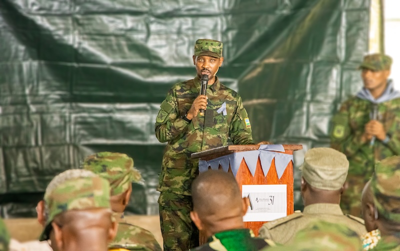 The Chief of Civil–Military Cooperation (J9) of the Rwanda Defence Force, Col Désiré Migambi Mungamba, delivered a lecture to students of Rwanda…