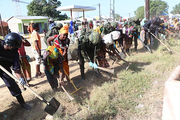 The activity was aimed at cleaning the streets of Palma town and enhancing the culture of working together in transforming their community. The activity was conducted jointly with the population and local authorities as well as the Mozambican National Security Organs.
