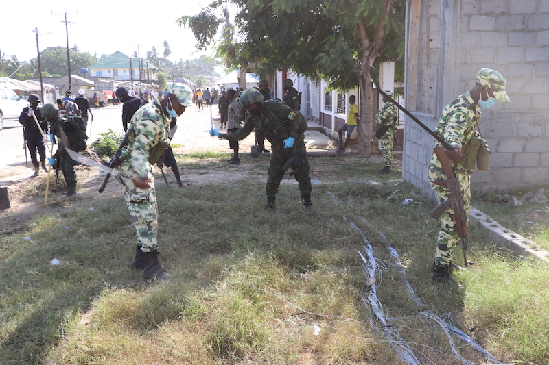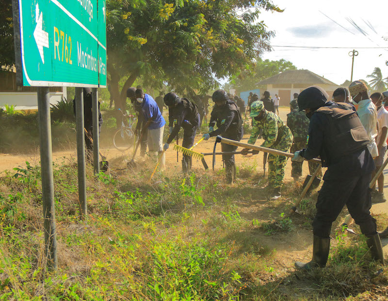 Rwanda Security Forces, Mozambican Security Organs and residents of Palma conduct community work in Palma town, Cabo Delgado Province, Mozambique