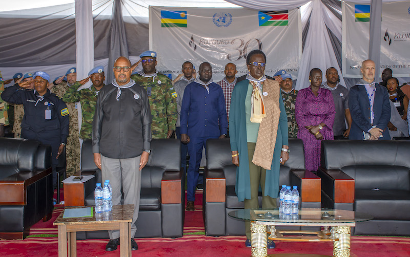 The commemoration was attended by South Sudan Vice President, HE Rebecca Nyandeng de Mabior, the High Commissioner of Rwanda to Uganda and Republic of South Sudan, HE Col (Rtd) Joseph Rutabana accompanied by Col Emmanuel Ruzindana, the Defence Attache, the Deputy Special Representative of Secretary General for the United Nations Mission in South Sudan, Mr Guang Cong, Monsignor Paul Strejak, Apostolic Nunciature in South Sudan among other key guests including South Sudan Government Officials, Diplomatic Corps, UNMISS leadership and staff as well as UN Agencies officials.