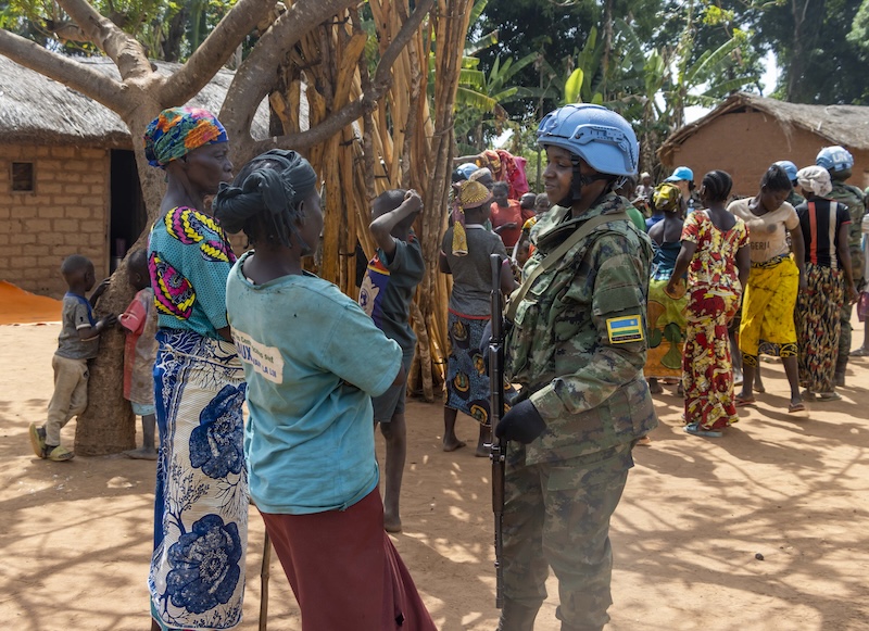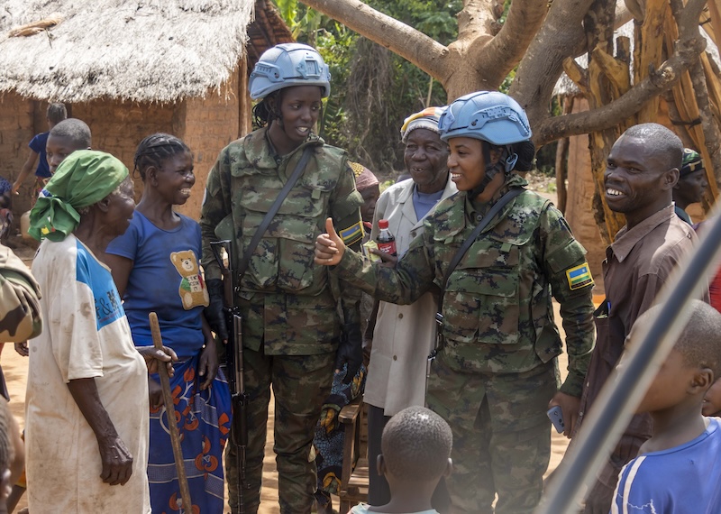 Rwandan female Peacekeepers and local women in CAR celebrate the International Women’s Day