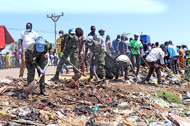 Rwandan peacekeepers and local community in South Sudan conduct community work in Juba City
