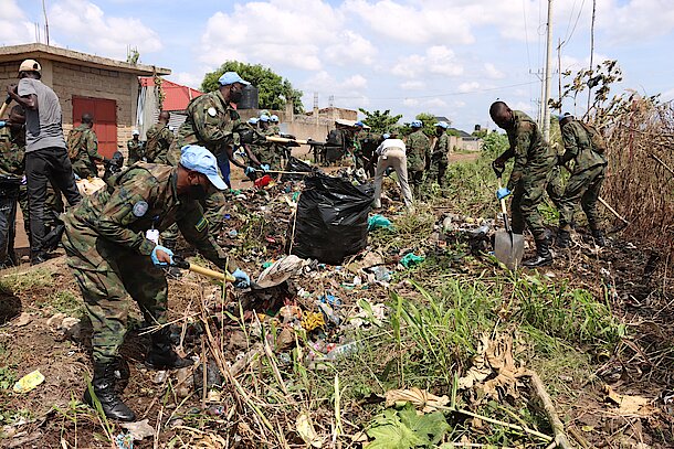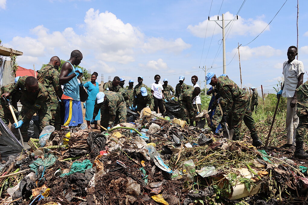 Rwandan peacekeepers and local residents conducted community work in Juba Capital City