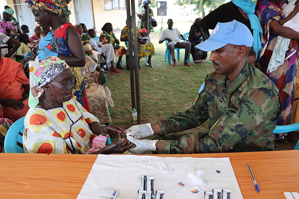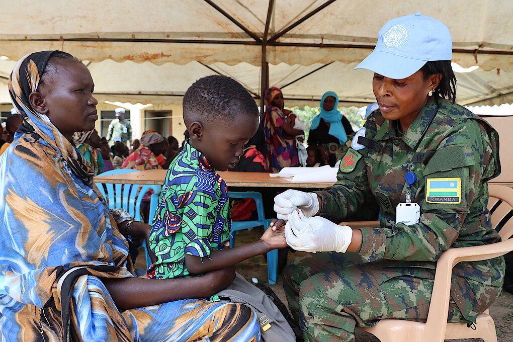 During the community work, Rwandan peacekeepers provided medical services through testing and treating Malaria in Gudele Block 4 and Munuki Payam; 102 people were treated.