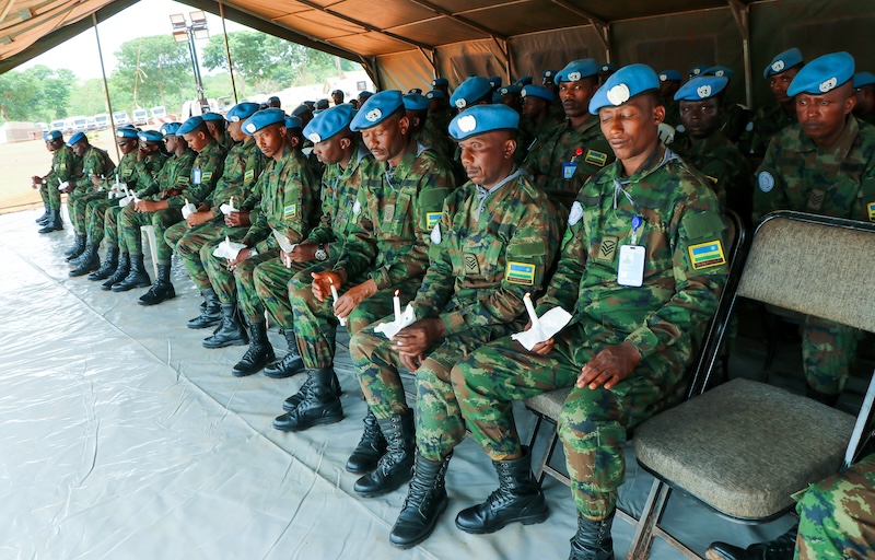 Rwandan peacekeepers serving under the United Nations Multidimensional Integrated Stabilization Mission in the Central African Republic (MINUSCA) in…