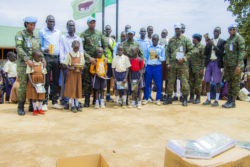 RWANDAN PEACEKEEPERS CONDUCT COMMUNITY WORK AND DONATE SCHOLASTIC MATERIALS TO PUPILS IN SOUTH SUDAN