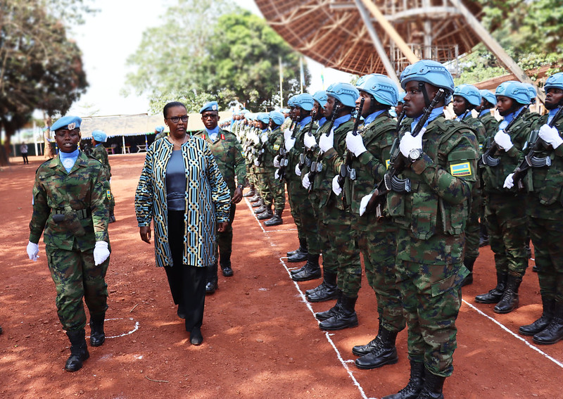 Rwandan peacekeepers serving under the United Nations Multidimensional Integrated Stabilization Mission in the Central African Republic (MINUSCA) in…