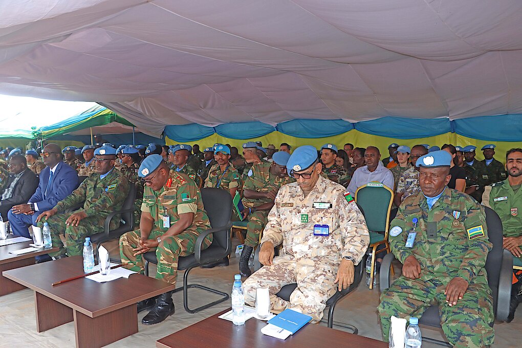 The ceremony was presided over by MINUSCA Force Commander, Lt Gen Humphrey NYONE who congratulated Rwandan peacekeepers for the good work done.