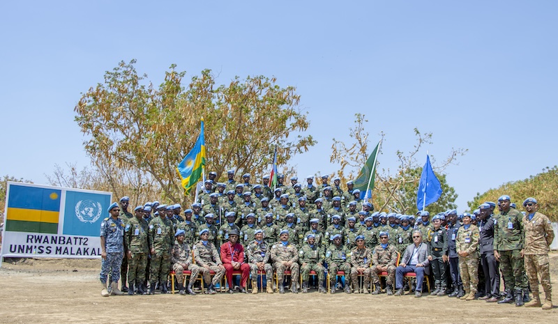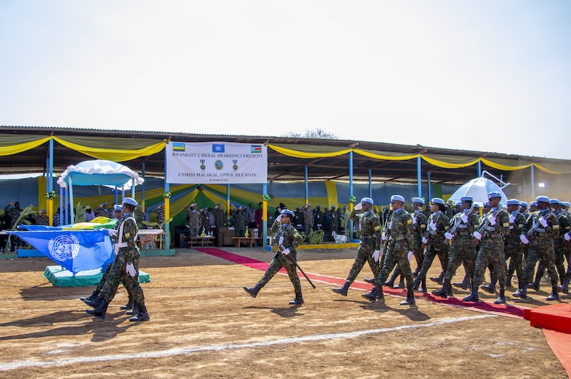 Yesterday, Rwandan peacekeepers (RWANBATT-2) serving under the United Nations Mission in South Sudan (UNMISS), Malakal, were awarded UN service medals in recognition of their dedication to peacekeeping.