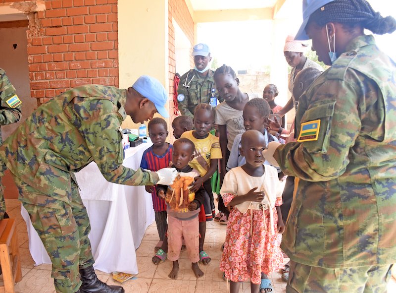 On 16th June 2022, Rwandan peacekeepers also provided free medical services to pupils at Green Sudd Nursery and Primary School in Juba Town.