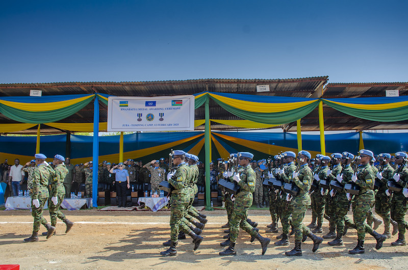 Rwandan peacekeepers (RWABATT-1) under the United Nations Mission in South Sudan (UNMISS) were today decorated with UN service medals in recognition for their service in peacekeeping operations. The ceremony was held in RWABATT-1 Headquarters, at the UN Tomping Base Camp at Juba.