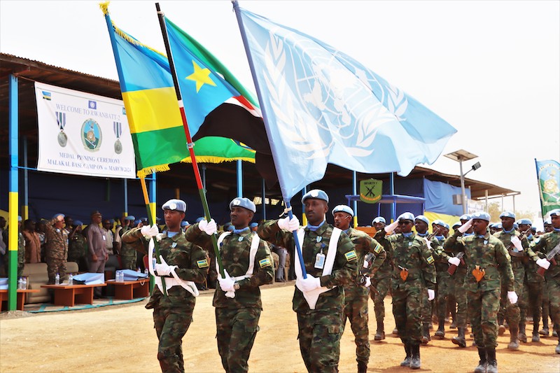 Today, Rwandan Peacekeepers (Rwanbatt-2) serving under the United Nations Mission in South Sudan (UNMISS) were decorated with UN peacekeeping medals in recognition of their professional service in fostering peace and stability in South Sudan's Upper Nile state. The ceremony took place at Malakal Town in the Rwanbatt-2 base camp.