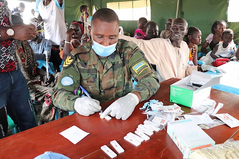 Rwandan Peacekeepers in South Sudan offer medical services to residents in Juba