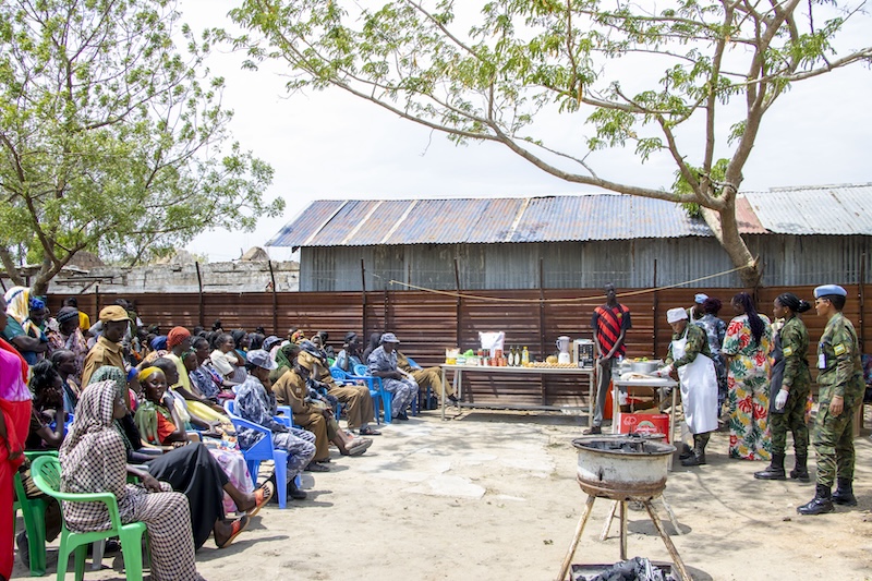 Rwandan female Peacekeepers ( Rwanbatt-2), in Malakal under the United Nations Mission in South Sudan (UNMISS), conducted a three-day outreach program aimed at educating local mothers on combating malnutrition in children.