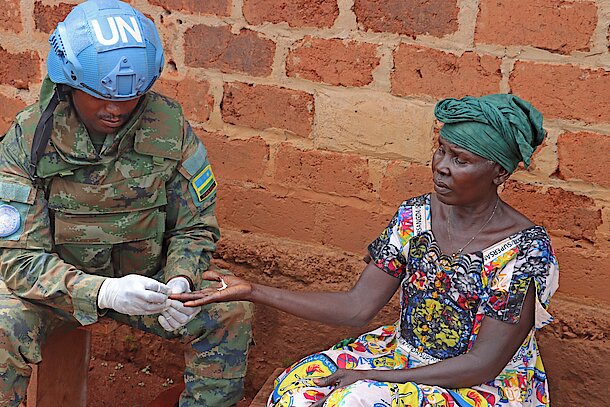 Rwandan peacekeepers provide medical services to residents in Sam-Ouandja City in Central African Republic
