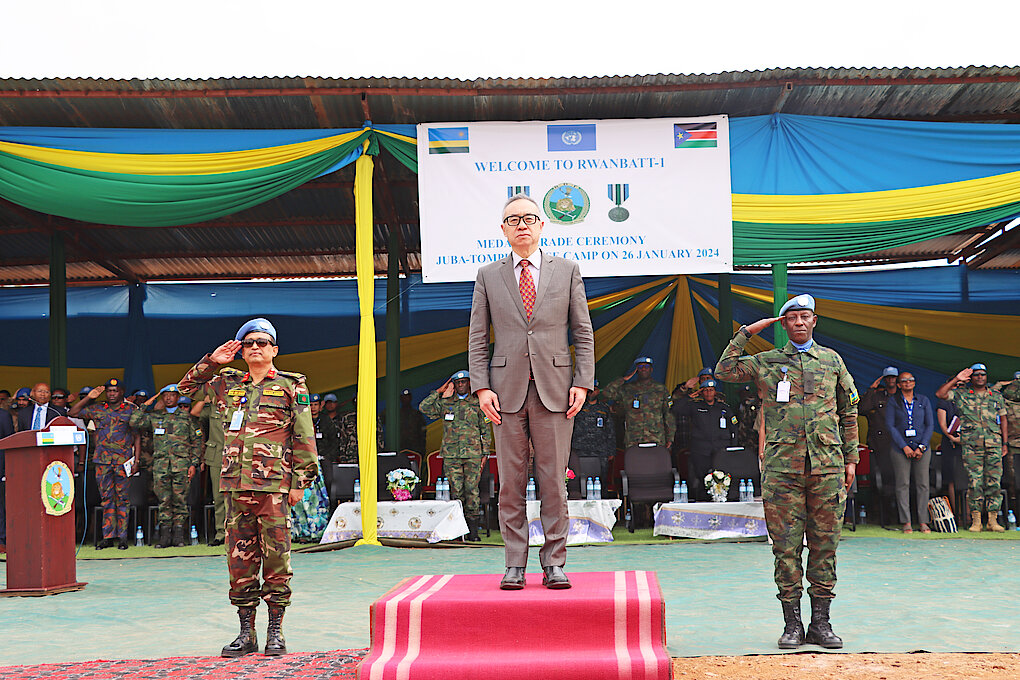 Today, 26 January 2024, Rwandan peacekeepers (Rwanbatt-1) under United Nations Mission in South Sudan (UNMISS) were decorated with UN Service Medals in recognition of their peacekeeping service. The event was held at Tomping Base Camp, Juba.