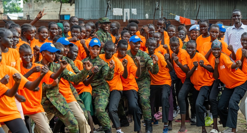Rwandan peacekeepers under the United Nations Mission in South Sudan (UNMISS) recently conducted a physical protection training session for over 60 young girls at Malakia Girls Primary School in Malakal. The initiative aimed to empower the students with basic skills to protect themselves in challenging situations, promoting both physical confidence and resilience among the young participants.