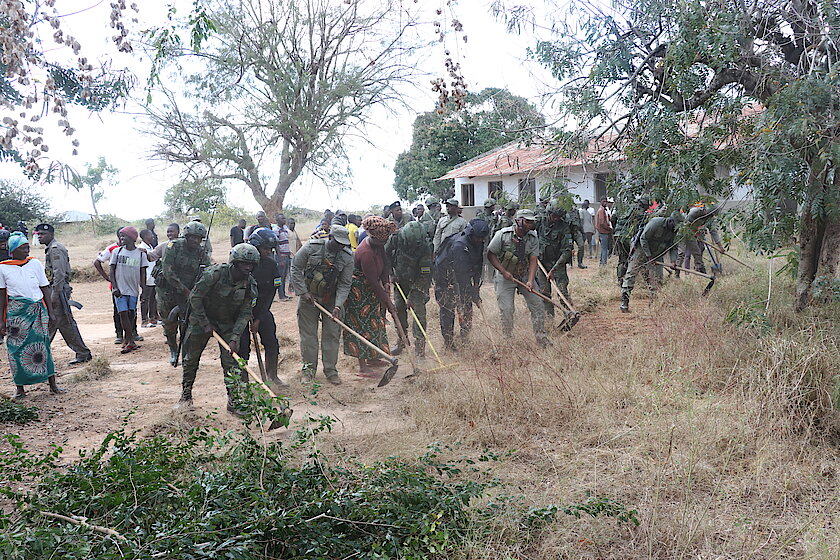 Rwandan Security Forces in Mozambique conducts community work at Milamba Primary School