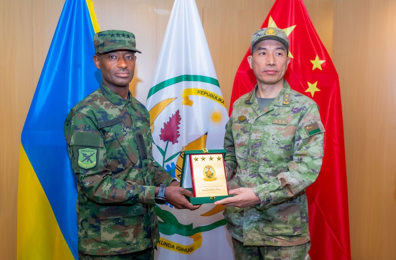 Hon J Marizamunda, the Minister of Defence and Gen MK Mubarakh, the Chief of Defence Staff of the Rwanda Defence Force, received Lt Gen Huang Xucong, Deputy Commander and Chief of Staff of the Central Theater Command of the Chinese People’s Liberation Army, along with his delegation, who are on a four-day official visit to Rwanda.