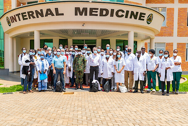 Students, Lecturers of the Claude Bernard University Diploma of Allergology, Lyon, France on a medical training visit at Rwanda Military Hospital
