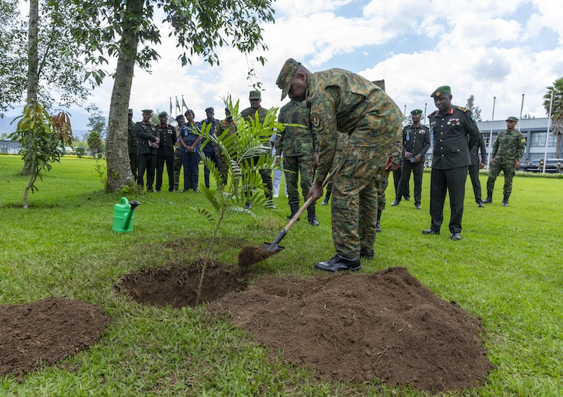 Gen Muhoozi was welcomed by the college Commandant, Brig Gen Andrew Nyamvumba, and was given a guided tour of the college, during which he planted a tree as a symbolic gesture of environmental preservation.