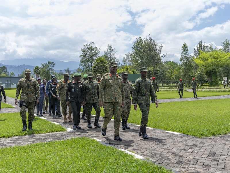 The Uganda Peoples’ Defence Forces (UPDF) Chief of Defence Forces (CDF), Gen Muhoozi Kainerugaba, accompanied by the Rwanda Defence Force (RDF) Chief of Defence Staff, Gen MK Mubarakh, visited the Rwanda Defence Force Command and Staff College (RDFCSC) in Nyakinama, Musanze District, where he delivered a lecture to the students of the Senior Command and Staff Course.
