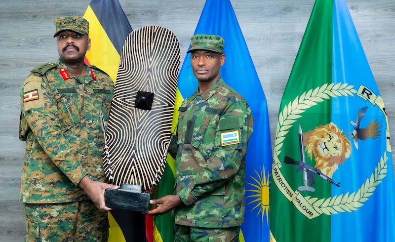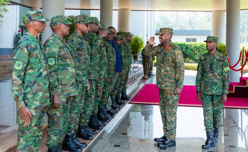 Today, the Uganda People's Defence Forces (UPDF) Chief of Defence Forces (CDF) Gen Muhoozi Kainerugaba along with his delegation visited the Rwanda Defence Force Headquarters and were received by Gen MK Mubarakh, the RDF Chief of Defence Staff.