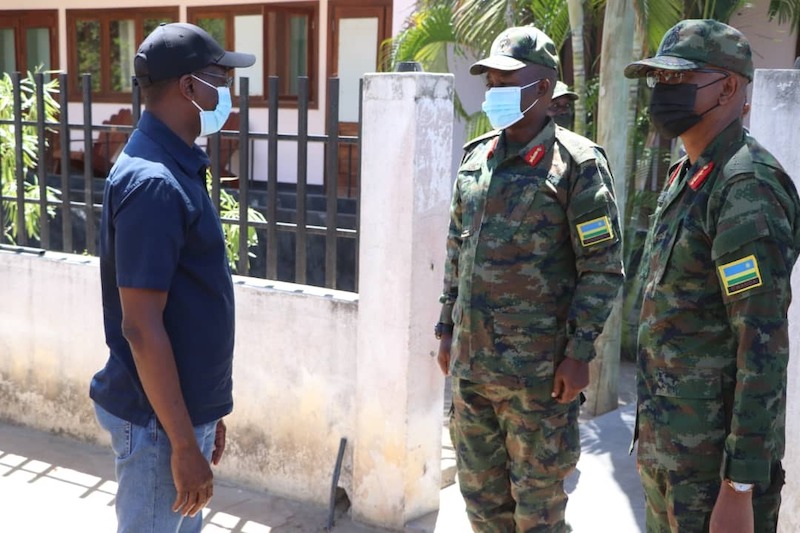 On arrival he was welcomed by Rwanda Security Forces-Joint Task Force Commander Maj Gen Innocent Kabandana at Joint Task Force Headquarters accompanied by Brig Gen Pascal Muhizi, the Task Force Battle Group Commander.