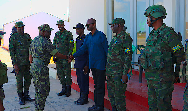 The Mozambique Chief of General Staff Admiral Joaquim Mangrasse visits Rwanda Security Force HQ in Mocimboa da Praia - Cabo Delgado