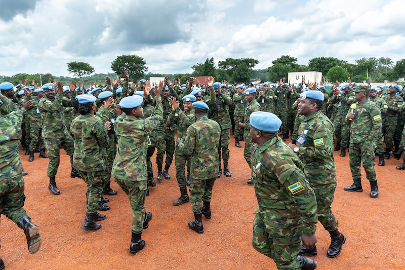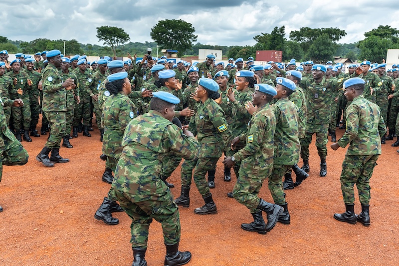 Rwandan peacekeepers serving under the United Nations Multidimensional Integrated Stabilization Mission in the Central African Republic (MINUSCA), in…