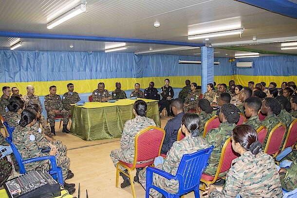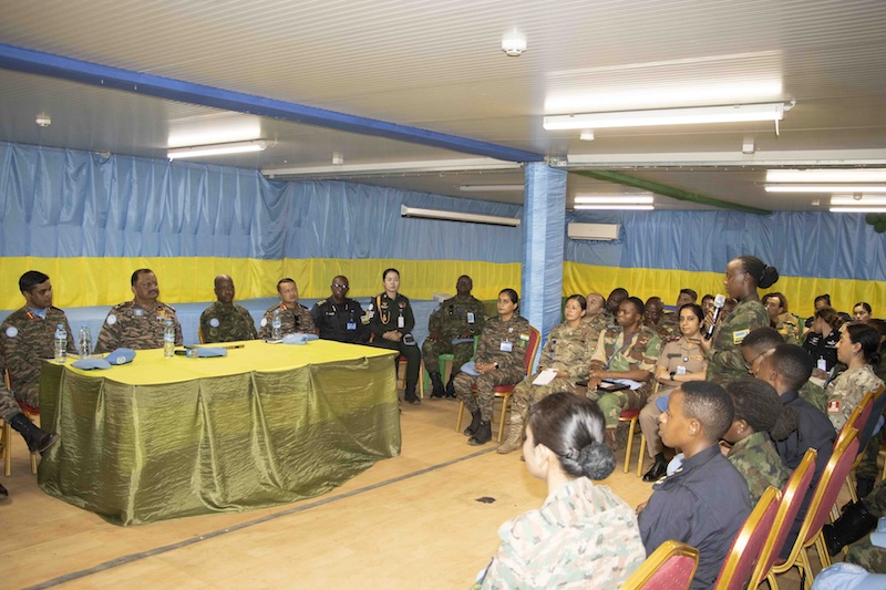 In his address, the Force Commander not only engaged with the female peacekeepers but also spoke with Rwandan peacekeepers more broadly, commending their professionalism and dedication. He emphasised that the continued contribution of female peacekeepers significantly strengthens trust with local communities and advances the mission’s mandate. He further encouraged them to maintain high standards of discipline, courage and commitment, assuring them of the mission’s full support in their service.