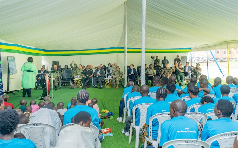 Yabagejejeho inshingano z’Ikigo cya Mutobo, asobanura uruhare kigira mu kwakira no gufasha abahoze muri FDLR, kugira ngo bajye mu buzima busanzwe iyo batahutse bavuye mu mashyamba ya Congo. Yasobanuye ko iki gikorwa gifata igihe kingana n’amezi atatu, kikaba kigizwe n’inyigisho z’uburere mboneragihugu, amahugurwa y’imyuga no kwihangira imirimo, n’ubufasha bw’imibereho bugamije gutuma aba bahoze ari abarwanyi baba abaturage bubahiriza amategeko kandi biteza imbere, bagateza n’imbere igihugu.