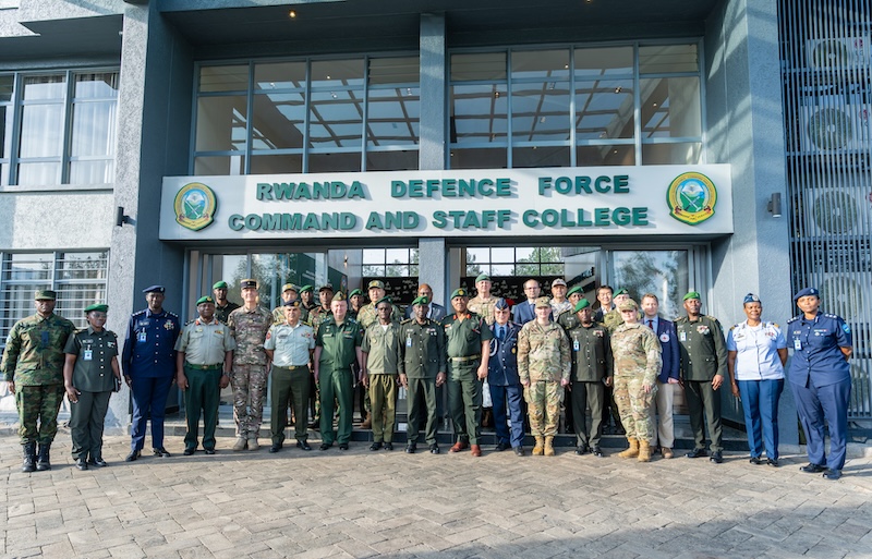 Nyuma yaho, iri tsinda ry’abashyitsi ryasuye Ishuri Rikuru ry’Ingabo z’u Rwanda i Musanze, bakirwa n’Umuyobozi w’Ikigo, Brig Gen Andrew Nyamvumba, hamwe n’abarimu b’Ikigo. Umuyobozi w’Ikigo yabagejejeho inshingano z’Ikigo zo gutanga amahugurwa yo ku rwego rwo hejuru ku bayobozi b’ingabo, no kubaha ubumenyi mu kuyobora ibikorwa byo mu rwego rw’umutekano muri iki gihe kigaragaramo ingorane nyinshi z’umutekano.